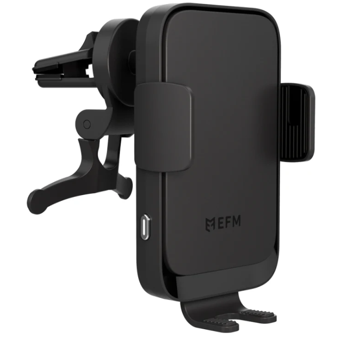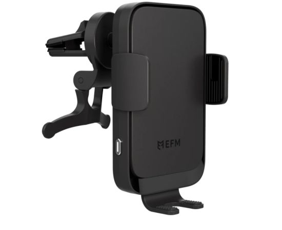 Featuring dual wireless charging coils, the EFM Dual-Coil Wireless Car Charger is the perfect companion for convenient and safe wireless charging in the car. The dual coils mean the charger is universally compatible, regardless of the size of the mobile device. The mount recognises when a device has been placed in the cradle, and automatically secures the gripping arms around it to commence charging. Supplied with a 1m USB-C cable, 20W power supply and dash and vent mounts, the EFM Dual-Coil Automatic Wireless Car Charger is your one stop solution for in-car power.