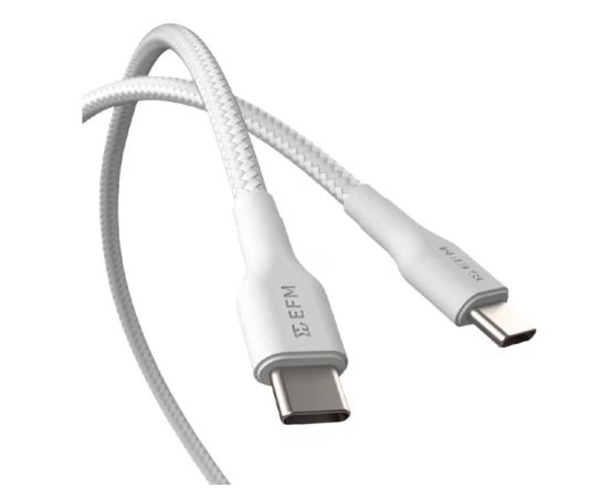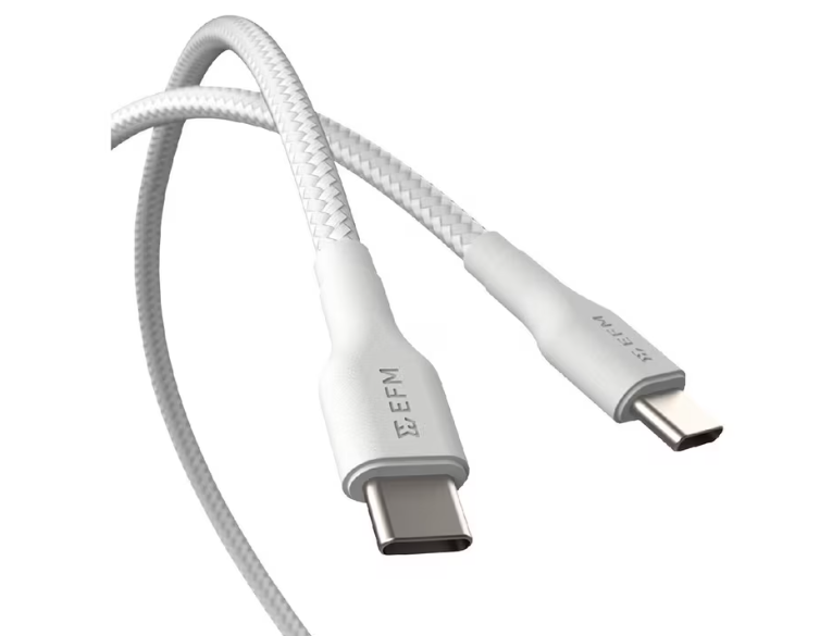 Elevate your charging and data transfer experience with this EFM Type-C to Type-C Braided Power and Data Cable. Say goodbye to the hassle of carrying multiple cables, as this versatile cable handles up to 5A 100W of power and delivers lightning fast 5Gbps data speeds. Plus, with reinforced aramid fibres, the durable braided material and connectors provide exceptional strength, rated to endure a minimum of 20,000 bend cycles.Elevate your charging and data transfer experience with this EFM Type-C to Type-C Braided Power and Data Cable. Say goodbye to the hassle of carrying multiple cables, as this versatile cable handles up to 5A 100W of power and delivers lightning fast 5Gbps data speeds. Plus, with reinforced aramid fibres, the durable braided material and connectors provide exceptional strength, rated to endure a minimum of 20,000 bend cycles.