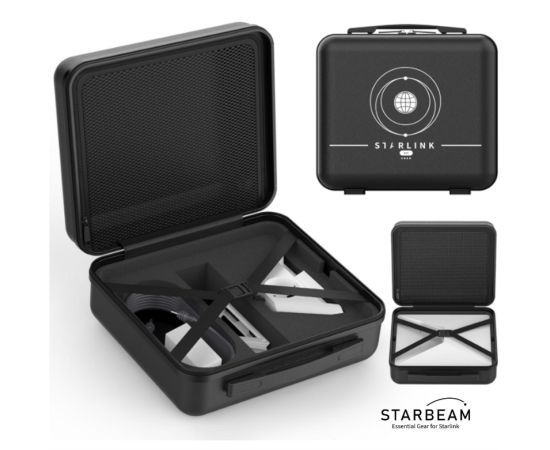 Lightweight and rugged Starlink MINI Travel Case with custom-molded lining and impact-absorbing foam, designed to protect and carry your Starlink Mini dish and accessories.Lightweight and rugged Starlink MINI Travel Case with custom-molded lining and impact-absorbing foam, designed to protect and carry your Starlink Mini dish and accessories.